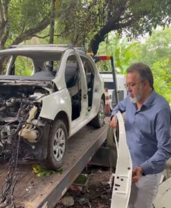 “Não adianta os ladrões tentarem colocar desmanches de carros em Belford Roxo, porque nós acharemos. Muito importante a denúncia no Linha Direta com o Canella. Recebemos mais uma denúncia, mandei nossas equipes para o local, encontramos diversas peças de veículos roubados e esse carro novo. É uma covardia o que esses ladrões fazem com as pessoas. Eles colocam em local de mata fechada para fazer esses desmanches de carros roubados. Belford Roxo não será refém de marginal nenhum”, destacou o prefeito Márcio Canella, ao lado do secretário de Transportes, Luiz Brito.